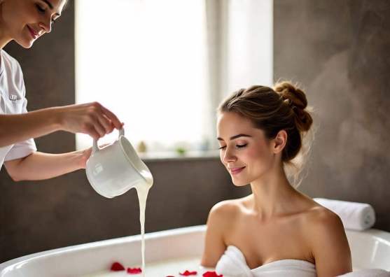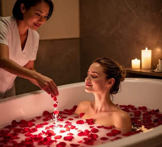 El agua y las flores se unen para acariciar la piel con ternura, mientras cada pétalo de rosa se convierte en un símbolo de amor y renovación.