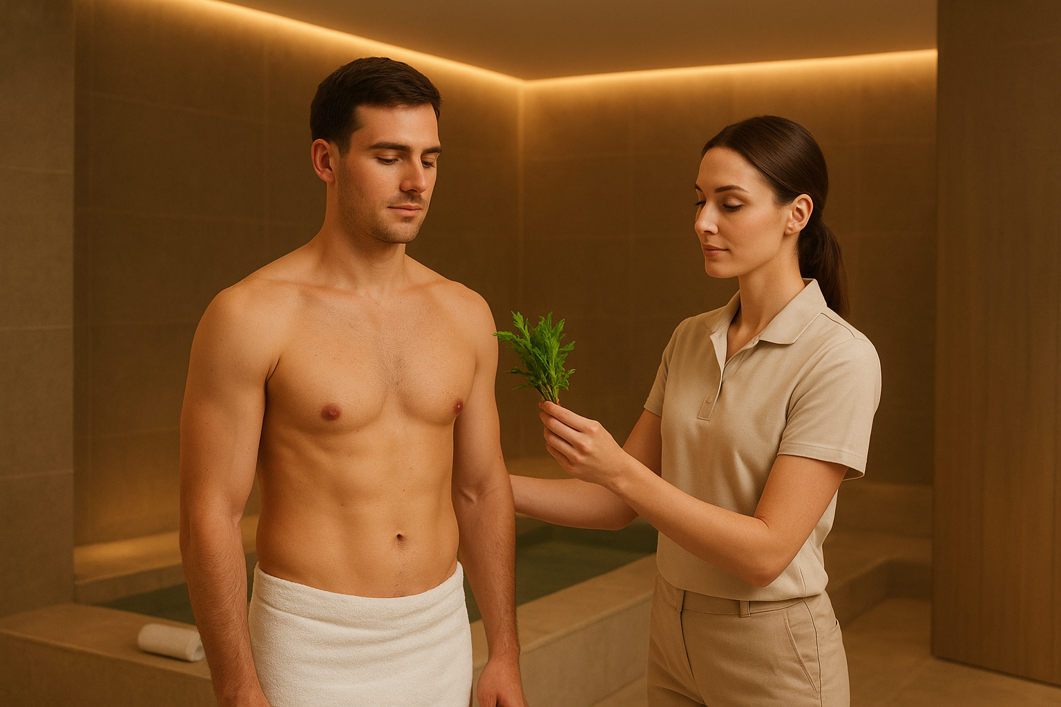 La Precision Botanical Sweep Technique™ es un estímulo táctil direccional aplicado con planta fresca (ruda) diseñado para modular el estado del sistema nervioso antes del baño.