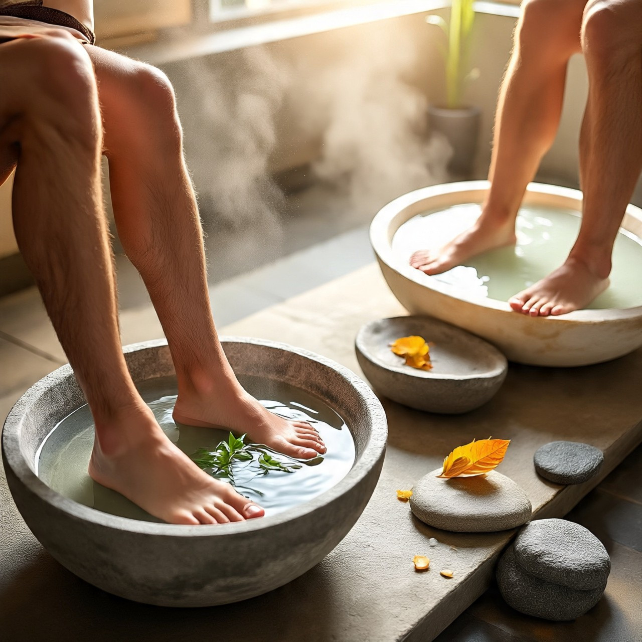 Baño de Pies con hierbas ancestrales, miel y sales, exfoliación suave de Pies, lavado, suave enjuague, exfoliacion , secado e hidratación, y seguido de Masaje relajante de Pies con aceite tibio,, seguíido de un Masaje Relajante corporal con Aceite tibio y diferentes técnicas de nuestro signature, Aromaterapia,