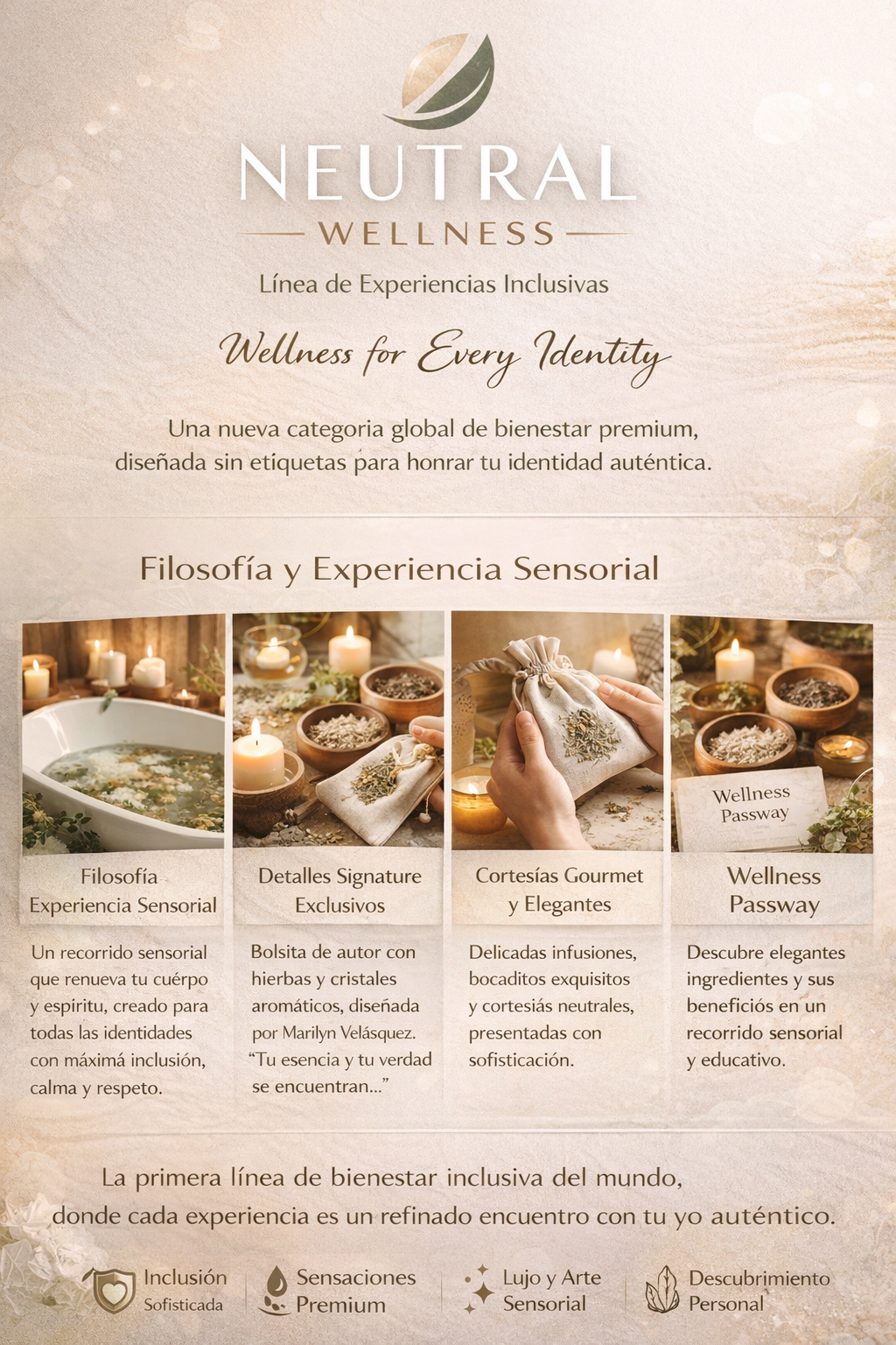 "Neutral Wellness es nuestra creación única, un nuevo camino en el bienestar global. Cada esencia, cada textura y cada aroma fueron diseñados por Marilyn Velásquez / Sofie Bright para que descubras tu verdadera esencia. Aquí no hay etiquetas ni límites, solo experiencias sensoriales que revelan lo que siempre ha sido tuyo. Bienvenido a lo exclusivo, bienvenido a lo único, bienvenido a tu Neutral Wellness."