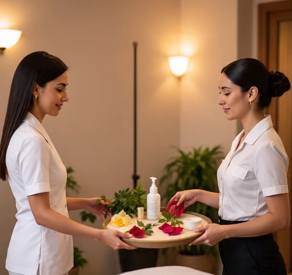 Baño Ritual: La sesión culmina con un baño (frecuentemente de rosas), que incluye limpieza energética con palo santo, aromaterapia y enjuague suave para sellar la experiencia.