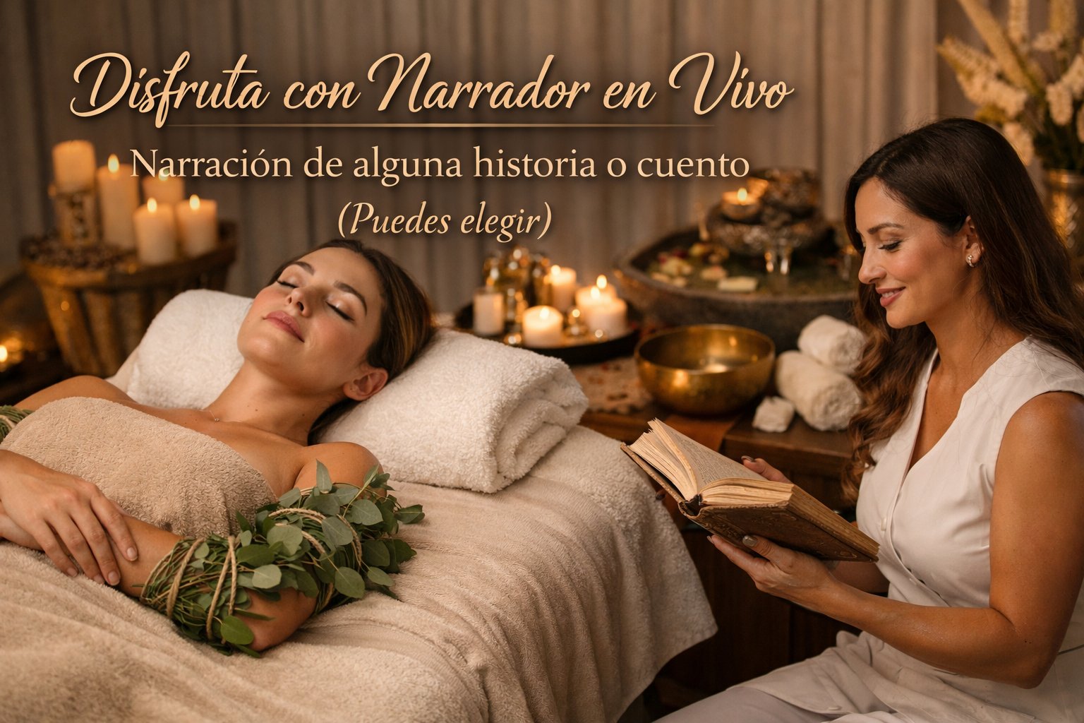 1 asistente - cortesía gourmet - exfoliante corporal - Jabón líquido corporal - Soft Aromaterapia - Musicoterapia - Video de tu elección o un libro para leer durante tu sesión.